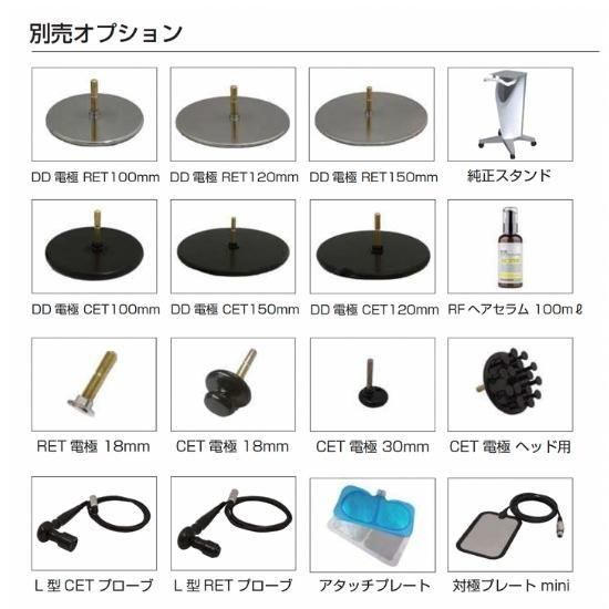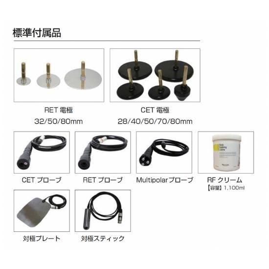 1台にCETとRETの両方をの機能がついたRF高周波温熱機器(ラジオ波)です。体の深部にジュール熱を発生させ、 温熱作用で身体の深部加温を可能とします。