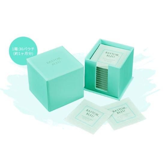 1.化粧水でお肌を整えた後、バストールブルーをパウチ内の半分位を手に取ります。